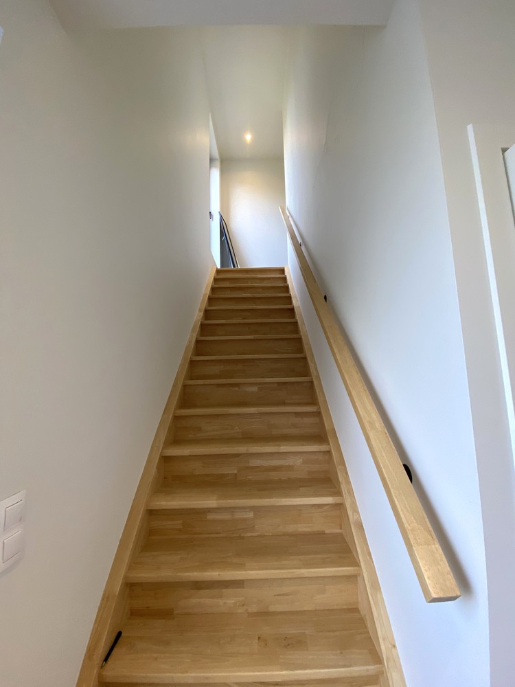 Composition du rez-de-chaussée: hall d’entrée avec WC invités, séjour lumineux avec coin salon et salle à manger donnant sur le jardin et la terrasse ensoleillés, cuisine américaine entièrement équipée avec des finitions haut de gamme et tout le confort moderne.