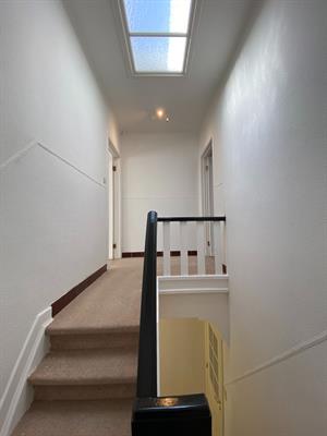 In de badkamer is er aansluiting voor de wasmachine, praktische berging onder de trap.
